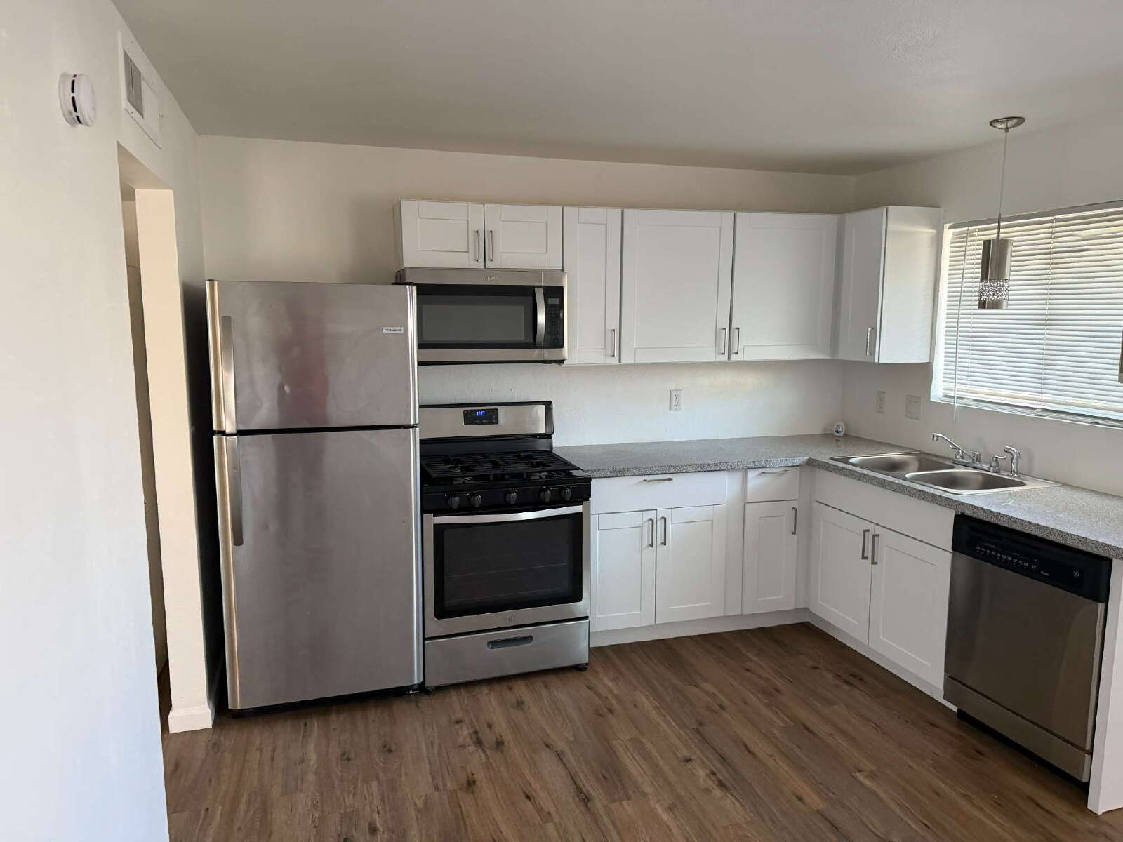 This single-floor 1 bedroom, 1 bath apartment offers approximately 700 sq ft of well-designed living space. The home features vinyl flooring throughout, a full appliance package including refrigerator, stove, microwave, and dishwasher, fresh interior paint, and an updated bathroom. The large bedroom provides generous space for comfortable living and storage, making this unit both functional and inviting.